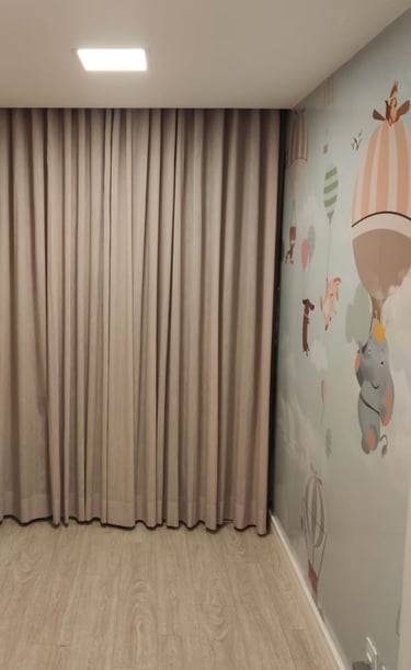 Transformamos ambientes com papel de parede, cortinas e persianas sob medida.